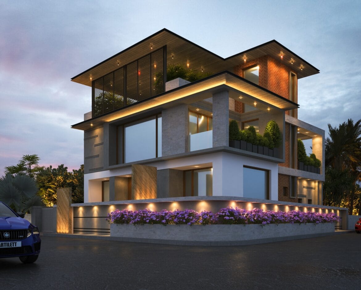 Volumetric Contemporary Home with Facade Lighting & Private Balcony